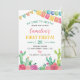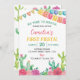 Vår Fiesta Cactus First Fiesta födelsedagsinbjudan är det perfekta sättet att inbjuda vänner och familj till din fest. Designen har ett färgglatt tema, med gott om utrymme för alla viktiga detaljer som datum, tid och plats för festen. Perfekt för alla åldrar, kön och tema för festen, det är säkert att imponera på dina gäster och få dem att bli upphetsade inför firandet.