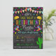 Bedårande "taco 'bout a" fiesta pensionsfestinbjudan! Har en falsk svart tavla bakgrund och söta fiesta grafik! En bra inbjudan att använda när du är värd för en college eller high school fiesta tematiskt examensfest!
