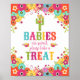 Fiesta Theme Dessert Bord Poster att Spädbarn är sött, ta en behandlingsdesign med färgstarka blommor, kaktus med sombrero.