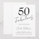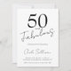 Fifty and Fabulous script minimal black modern 50th birthday invitation that you can personalize and send out for your fiftieth birthday party celebration. The words "Fifty and Fabulous" are set using popular script font typography. The text colors can be changed using the edit menu.