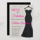 A Fifty and Fabulous elegant script, black, hot pink, and silver glitter modern 50th birthday invitation that you can personalize and send out for your fiftieth birthday party celebration. The words "Fifty and Fabulous" are set on a silver glitter background, with popular stylish hot pink and black script font typography, placed aside an elegant, sophisticated, and glamorous black glitter strapless evening gown. Have fun customizing the name, date and time, location, and RSVP with the editing tool.