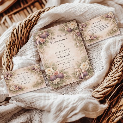 An elegant fig-inspired botanical collection designed with soft ivory textures, antique greenery, and ripe fig accents for a refined, romantic atmosphere. The composition blends vintage garden florals with Mediterranean fig orchard elements, creating a timeless aesthetic perfect for an elevated celebration. Ideal for classic, European-inspired, storybook, and fine-art styled events.