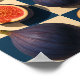 Each fig is illustrated in lifelike detail, from the deep purple skin to the intricate golden-pink interiors. The checkerboard pattern adds a graphic, stylish contrast that brings a contemporary edge to this otherwise earthy composition. It’s both refined and playful, ideal for those who love design that feels grounded in nature but bold in execution.