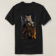 T-tröjan "Fighter Cat" har ett kraftfullt och rörligt kattdjur som symboliserar styrka och motståndskraft. Katten är skriven i en aktion, med intensiv glöd från ögon med beslutsamhet. Dess smutsiga, muskulära bygg kompletteras med stridsredskap, såsom handskar och huvudband, som förkroppsligar andan hos en fruktlös krigare. Bakgrunden innehåller dynamiskt inslag som rörelse linjer eller mönster som ger ett djärvt och modernt utseende. Rubriken "Fighter Cat" visas med fet futuristiska, typografi, med vibrerande accenter som rött, vitt eller neon för att skapa kontrast mot den svarta vävnaden. Utformningen innehåller en märkre för snyggtens slut, "Detail End", för att lägga till en beröring för professionellen.