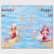 Grattis på födelsedagen inslagning papper med rosa svan och en röd svan sjöjungfruar