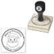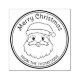 Desteis ursprungliga tecknad illustration av ett huvud för lycklig Jultomten. Tomten har en julhatt, han har ett fluffigt skägg och hans uttryck ansikte är glatt. Utformningen är inramad av runt gräns. Det finns också två anpassningsbara textområden.
