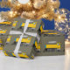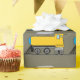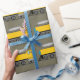 RR2-inslagning papper dekoreras med små ångmotorer i gult mot mörkens bakgrund, papper inslagning av underbara presenter