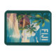 Fiji-retrovektorns resedesign. Fiji är ett tropiskt paradis i södra Stilla havet, känt för sin kristallklara vatten, korallrev och ölandskap.