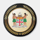 Fijis jacka infunderas i en faux guld rimmed cirkel och sätts mitt i två faux guld laurel löv grenar.