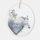 Filigree hjärta & vit ros för silver julgransprydnad keramik