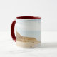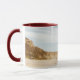 Det inspirerande citattecknet mugg skildrar ett enkelt naturfoto med blå himmel, en sandstrand och sten. Bible Verse Philippians 1:6: "Om du är säker på det här, kommer du att slutföra det till Jesus Kristus dag." Fotografi av Zach Camp. _