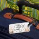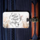Loggage tag med inspirationstecken Christian scripture skildrar enkla jordfärgstoner, vilda blommor med en hoppingivande bible Verse Philippians 4:13: "Jag kan göra allt sak genom Kristus som stärker mig."