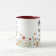 Kaffe mugg med inspirationsincitattecken visar en vattenfärgsdesign för blommigten med enkla blommor och fjärilar. Det innehåller ett uppmuntrande kristet citat från Bible Verse Philippians 4:6-7, "Pray more Worry Less." Verserna är tryckta i fullt på den lämnat sidan, "Pray about All; Berätta för Gud dina behov... Om du gör detta kommer du att uppleva GOD's Peace, som är mycket underbart än vad människan kan förstå."