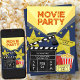 Filmpartiets inbjudan - perfekt för alla filmteman party, t.ex. filmnatten hemma, under stjärnorna eller på biografen! Roligt, enkel design med stjärnor och ett filmset clapperboard som innehåller information om din inbjudan. Inbjudan är komplett med illustrationer av biograftemat som popcorn, soda, entry biljett och vintage marquee ljus. Bläddra bland mina barninbjudningar till samlingar med liknande design eller fler idéer.