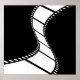 Enkel svartvit ikonbild av en filmremsa. Anpassa enkelt och välj en egen bakgrund färg eller lägg till text. Bild finns tillgänglig på olika presenter och produkter.