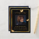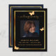 Ett tvåsidigt program för elegant. En svart bakgrund, ett faux guld ram, guldfjärilar och utrymme för ett foto. Anpassa och lägg till namn, data och din text.