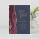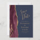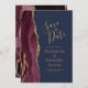 Den här eleganten är modern när du sparar datumkortet och har en burgudisk vattenfärgsagat gräns som trimmas med faux guld glitter. Anpassa enkelt guld-färgad-texten på en marin blå bakgrund. En matchande burgundi- och guld-agate-design visas på baksidan.