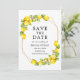 Modern vattenfärgsleemon och Greenery Guld Geometric Ram sparar meddelandekortet för Förlovning av datum - Foto bakåt