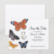 Söt antika fjärilar dansar på sidan på den här vackra fjärilsinbjudan. Perfekt för vår eller sommar-bröllop, med lila, lavender, blått, tangerin färg. [Rekommenderad Papper: Columned] [Rekommenderat Färg kuvert: Elderberry] [Rekommenderat kuvert Liner: Pyrite] Dessa fjärilar kom från en 150 år gammal vetenskaplig illustration som visar Chinans exotiska fjärilar.