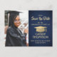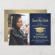 de glatta nyheterna om en kommande studentfest med anpassningsbar fotot i marinblått och faux guld-folie spara postkortsinbjudningarna. Bild och formuleringen i denna mall är enkla att anpassa och färg kan ändras med Zazzle-designen verktyg. Anpassa den med student namn, klassår och annan information om ditt val. Utformningen har en faux-folie-bakgrund och en pyttelilla, modern kalligrafi för elegant, klassisk vintage-typografi och ett favoritfoto, t.ex. ett äldre bild eller en bild från startceremonin. Observera att guld är tryckt på färg, inte metallfolie. Dessa kort från snyggt studenten är ett elegant för att en speciell dag firande med familj och vänner. Grattisar till student!