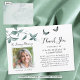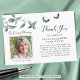 Begravningsfoto av Tack Butterfly Botanical Grönt. Skicka ett hjärtligt tack för den vänlighet och medkänsla som visas under din svåra tid av förlust. Designen har mjukt, muterat grönt vattenfärg botaniskt inslag och fjärilar, ett foto och ett redigerbart meddelandeområde för anpassningsbarna. ASSISTANS: Om du vill ha hjälp med designändringar, överföra designen till en annan Chatta eller om du vill koordinera objekt kontaktar du designern INNAN ORE ORDERING via Zazzle-meddelandefliken eller e-postmeddelandet makeitaboutyoustore@gmail.com.