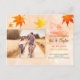 Fin höstmapel lämnar + bakgrunden för rustik lax färg designad på personligt bröllp Foto Spara postkortets datum. Urvalsformuleringen och fotot kan vara helt i personlig med din egen text & bild. Ljusa fotokort underbart för ett FALL-LANDSBYGGSBRÖLLOP | ELEGANT AUTUMN GARDEN WEDDING eller MAPLE TRÄD THEMED BRÖLLOP. (Du hittar de bröllop-essentialer och -favoriter som passar i den här butiken, Möhippa Heaven. Kontakta ujean4791@gmail.com för anpassningsbar och/eller samordning av bröllop-kontorsmaterial.)