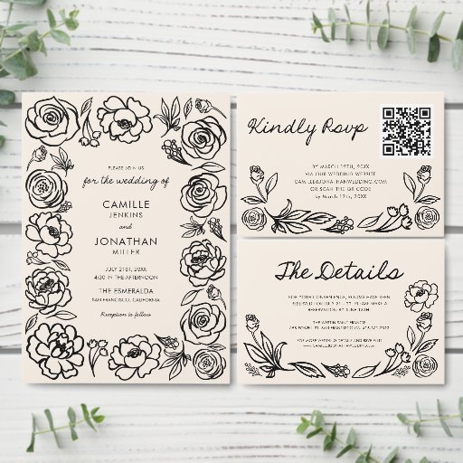 Elegant Floral Hand Drawn Wedding CollectionDesignad av Cava Party Design