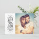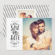 Med det här fotot sparar du datumkortet med fet typografi i stil. Baksidan har en strimlad mönster och ytterligare ett foto och text.