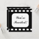 Dela med dig av nyheten om en filmkväll med denna roliga, filmtemade inbjudan. En fyrkantig bit svart-vit film är fylld med information om din fest. Skriv bara in rätt information.