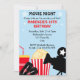 Denna filmnattfödelsedagsfest inbjudan presenterar en filmkamera, erkännande etiketterar, popcorn och en läsk och anpassadetextfält för din information om partyet.