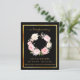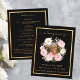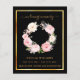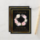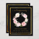 Ett tvåsidigt program för elegant. En svart bakgrund, ett faux guld ram och plats för fotot Dekorerad med en rosa och vit blommigt andedräkt. Anpassa och lägg till namn, data och din text.