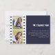 din uppskattning för gästerna efter ditt öppna hus i studenten med det här moderna Blue Filmremsa Photo Collage Studenten - tackkort. Kortdesignen har en filmremsa och två fotoplaceringar, studentmössor med skript och typografi för elegant. Personlig ditt eget uppskattningsbudskap till dina gäster.