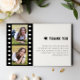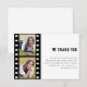 din uppskattning för gästerna efter ditt öppna hus i studenten med det här moderna filmremsfotokollage Studenten - tackkort. Kortdesignen har en filmremsa och två fotoplaceringar, studentmössor med skript och typografi för elegant. Personlig ditt eget uppskattningsbudskap till dina gäster.