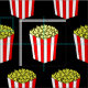 Coolans filmmatade väv med söta popcorn-lådor med gult i ett rött och vitt strippat paket. Gör coola filmgardiner eller kläder med den här roligten svart mönster. Kärnor av påsen maj över överkanten på varje reflekterande ruta som de använde på teatern.