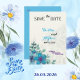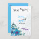 filt ecru papper blå blomma blommig spara datum kort.