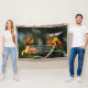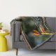 Den underbara Hummingbirdfågeln, en monarkfjäril och mexikansolrosen "fackla" blommar i en trädgård, digital sammansatt målning från fotografi, med Isaiah 41:10Scripture, är på denna kastfilt.
