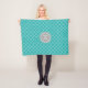 Beställnings- monogramfilt i turkoskrickablått, kolgrå färg och för quatrefoilgaller för vit marockanskt mönster.
