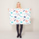 Beställnings- monogramfilt i ljusa och färgrika ugglor och fjäderillustrationmönster i ljus marinblå och persikakorall för turkos för kricka. Perfekt för en barnkammare eller barns rum.