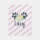 En roligt, nyckfull ullfilt som kan personifieras precis för din hårigvän. Denna filt presenterar två marinblåa tass avtryck och en rolig bukett av blommor som förläggas på en förtjusande rosor görad randig bakgrund.