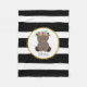 En ullfilt som presenterar en burlap, inspirerade illustrationen av en björn som ha på sig en blommakrona. Bakgrund är svartvita randar. Personifiera namn.