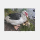 En bild av en morMuscovy anka och någon av henne ducklings under henne.