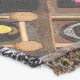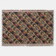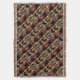 Denna samtidaa kastfilt presenterar ett upprepande abstrakt mönster av en upprätt röd och svart flaska av burgundy vin bredvid tre mer flaskor i en brunt, ett guld och en gul trävinkugge. En lantlig orange tegelstenväggbakgrund avslutar sammansättningen.