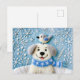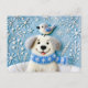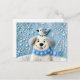 Filthund i snö med halsduk och fågel vykort