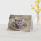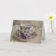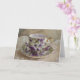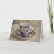 Min originalkonst pryder detta söta vykort med tekoppsmotiv till mamma bestående av mitt fotografi av min egen mors tekopp och tallrik i en vacker lila blomdesign. Bilden har behandlats med en akvarelleffekt för att ge ett illustrerat och lekfullt uttryck. Framsidan av kortet har texten "För mamma" och insidan av kortet har texten "Varje dag är jag tacksam för dig! Glad morsdag!". Ett fint och hjärtligt kort för alla mammor som älskar te, tekoppar, blommor och vintage-stil.