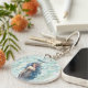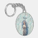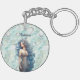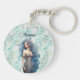 En vacker sjöjungfru med långlivat blått hår mot en bakgrund av teal med ett årstidsskal och mönster.