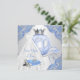 Askungen-födelsedagsinbjudan med vacker klänning, högklackade skor och tiara med en prinsessvagn på en ljusblå och silvervirvlad bakgrund. Denna vackra flickas Askungen en gång i tiden prinsessfödelsedagsinbjudan är lätt att anpassa för ditt evenemang genom att helt enkelt lägga till dina uppgifter i den typsnittsstil och färg och formulering du väljer. Du kan flytta på skorna och kudden eller ta bort dem om du föredrar det. Detta är en tryckt design utan riktig glitter, diamanter, spets etc.