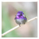 Vackra Costas hummingbird som visar av sina iridescent fjädrar.