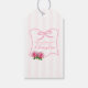 En första födelsedag med rosa rosor, fin båge och blekrosa ränder.