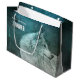En handväska med ett foto av en strålande hårig fluffy grått-varg. I bakgrunden finns en mörk skog med träd. Magisk mystisk vibe.