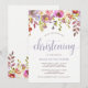 Den här vackra julklingsinbjudan innehåller söt vattenfärgblommor i mjuka nyanser av rosa, blått, lila och vitt, med löv för grönt och lila. "Christening" från ord förekommer i en modern typgrafi av pastellblått.